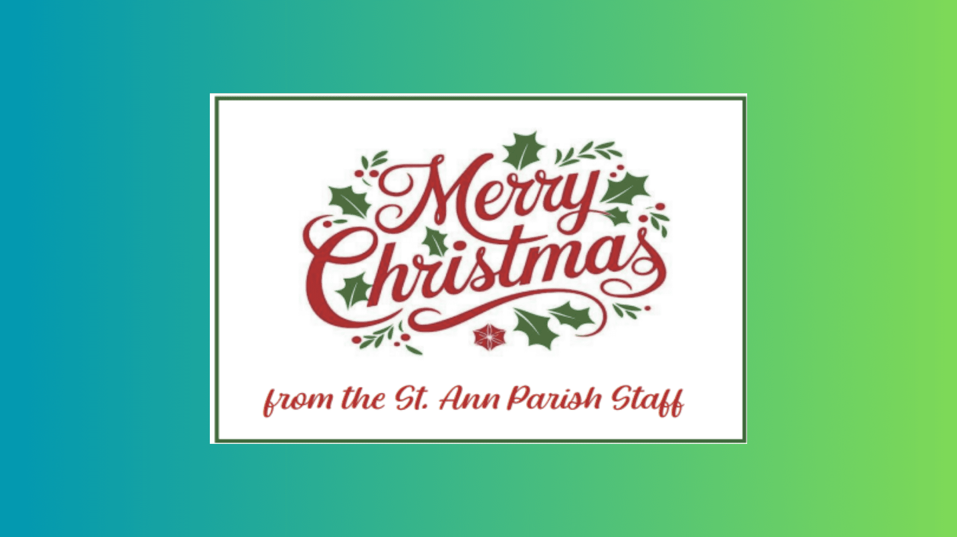 The Parish Offices will be closed starting Wednesday, December 24, through Friday, December 26 for the Christmas holiday, and will reopen on Monday, December 29.