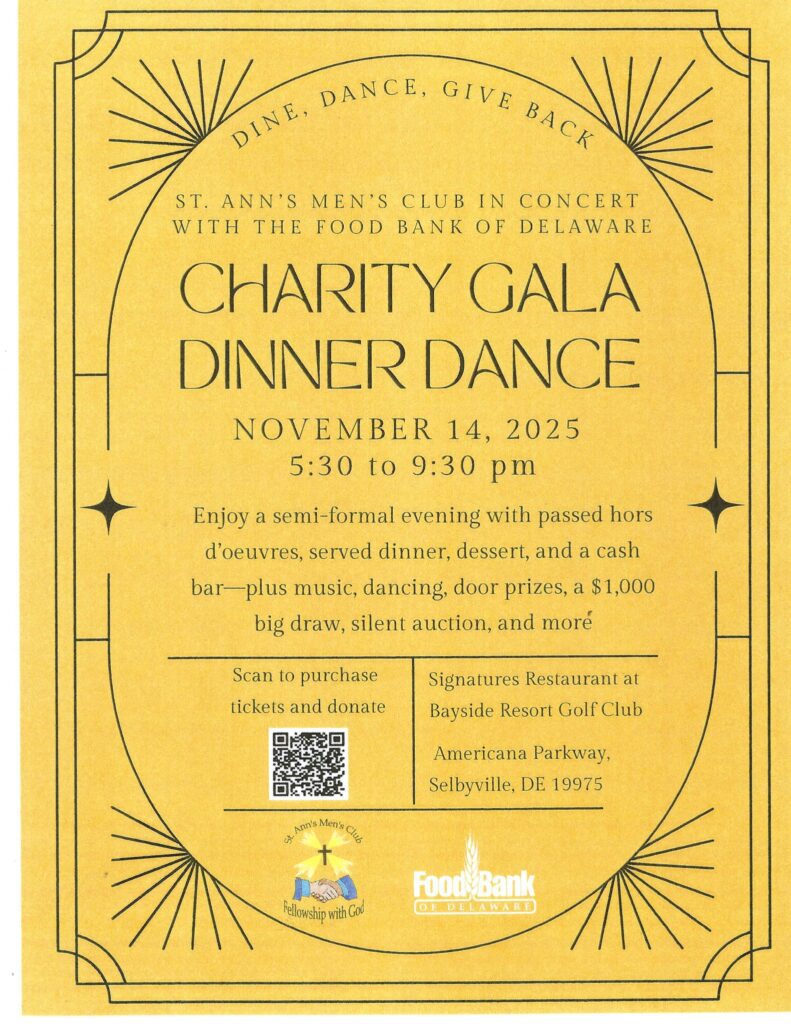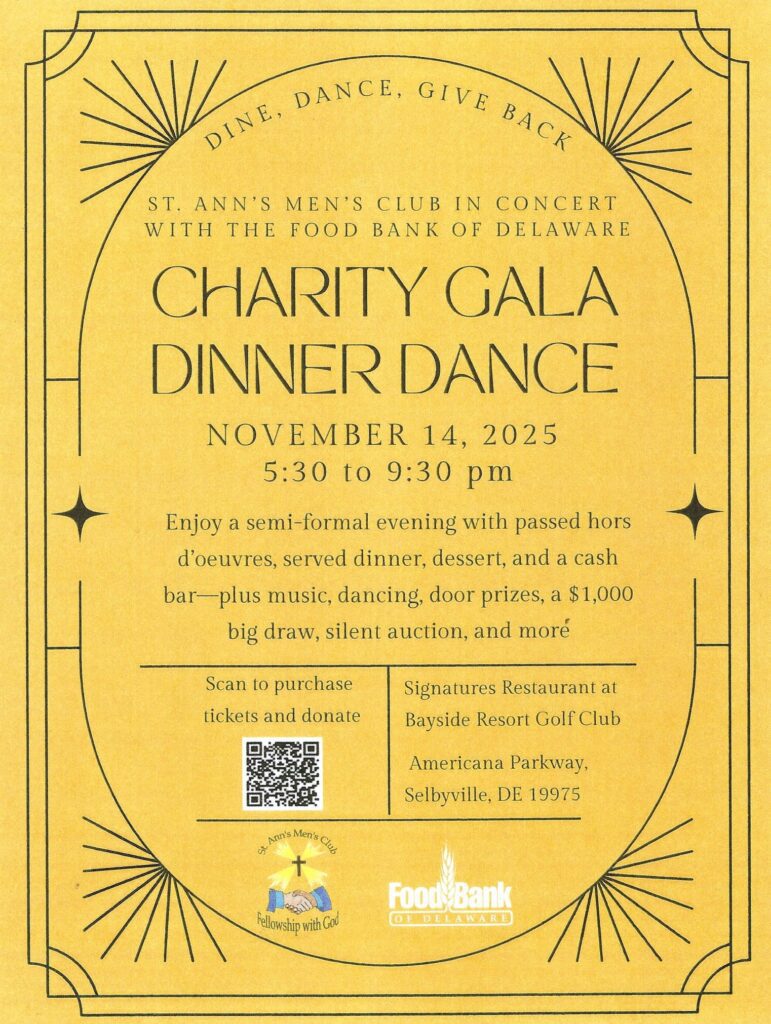 The event will help support the work of the Food Bank of Delaware (which in turn assists our own food pantry); Tickets are $65 per person and can be obtained by going to our Parish online giving portal.