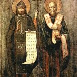 These brothers, the Apostles of the Slavs, were born in Thessalonica, in 827 and 826 respectively. Though belonging to a senatorial family they renounced secular honours and became priests. They were living in a monastery on the Bosphorous, when the Khazars sent to Constantinople for a Christian teacher. Cyril was selected and was accompanied by his brother. They learned the Khazar language and converted many of the people. Soon after the Khazar mission there was a request from the Moravians for a preacher of the Gospel. German missionaries had already laboured among them, but without success. The Moravians wished a teacher who could instruct them and conduct Divine service in the Slavonic tongue. On account of their acquaintance with the language, Cyril and Methodius were chosen for their work. In preparation for it Cyril invented an alphabet and, with the help of Methodius, translated the Gospels and the necessary liturgical books into Slavonic. They went to Moravia in 863, and laboured for four and a half years. Despite their success, they were regarded by the Germans with distrust, first because they had come from Constantinople where schism was rife, and again because they held the Church services in the Slavonic language. On this account the brothers were summoned to Rome by Nicholas I, who died, however, before their arrival. His successor, Adrian II, received them kindly. Convinced of their orthodoxy, he commended their missionary activity, sanctioned the Slavonic Liturgy, and ordained Cyril and Methodius bishops. Cyril, however, was not to return to Moravia. He died in Rome, 4 Feb., 869.